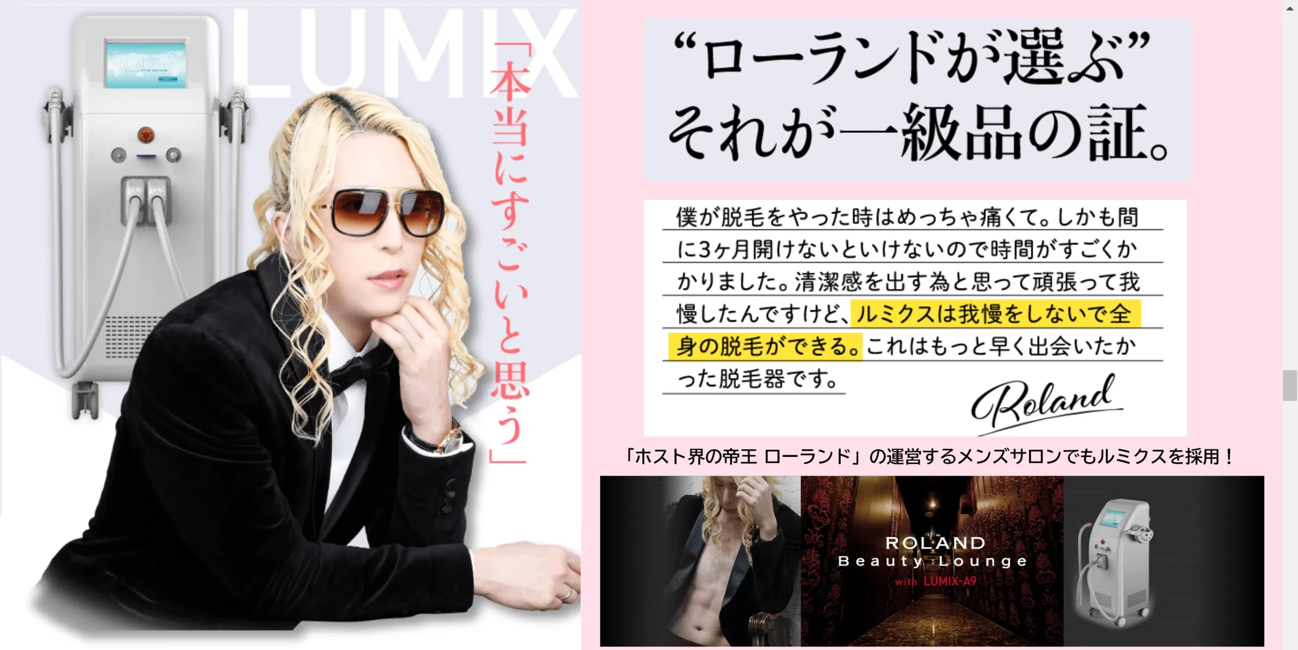 ネクサスで導入している脱毛器ルミクスは歌舞伎町ナンバー1ホストであるローランドさんも認めた脱毛機です。